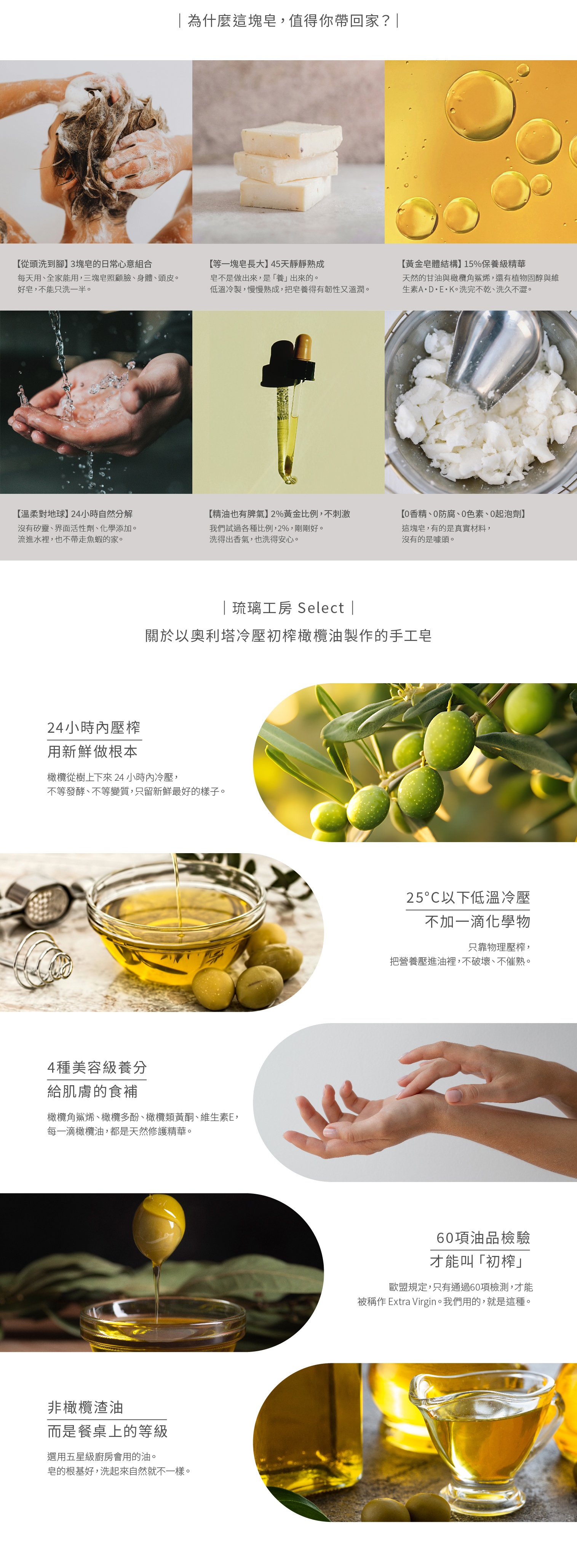 選用冷壓初榨橄欖油作為皂體基底,質地溫潤,洗後依然柔嫩清爽。
